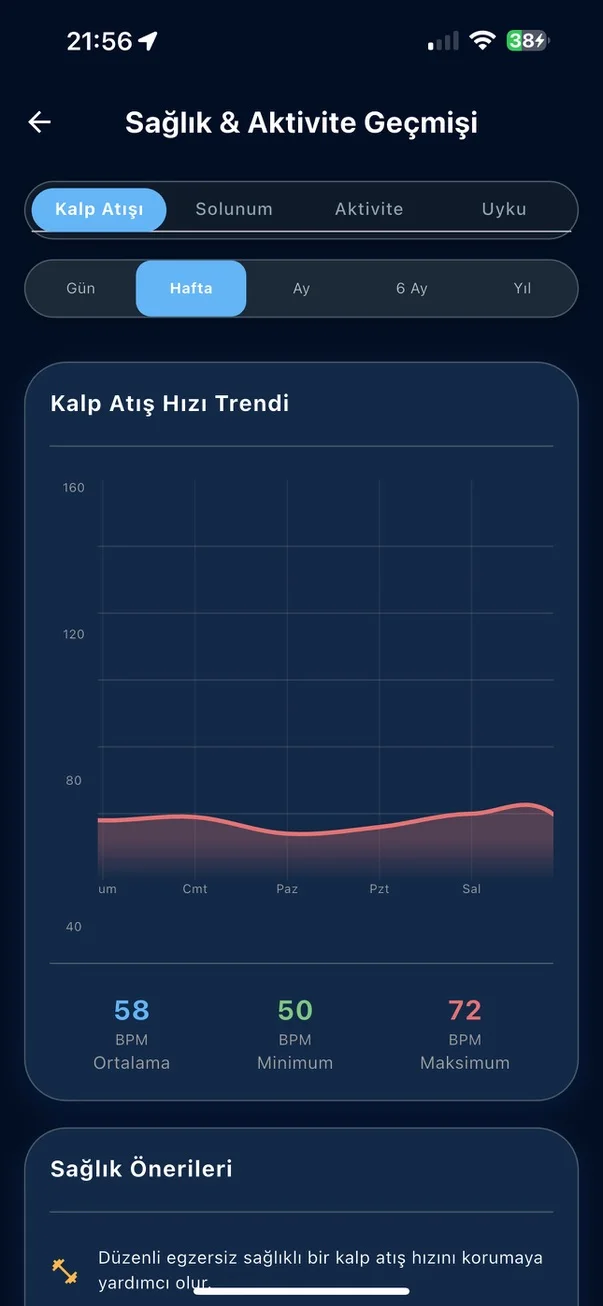 Solunum hızı ve düzenini anlık olarak ölçün. Stres, hastalık veya yorgunluk belirtilerini erken tespit edin.